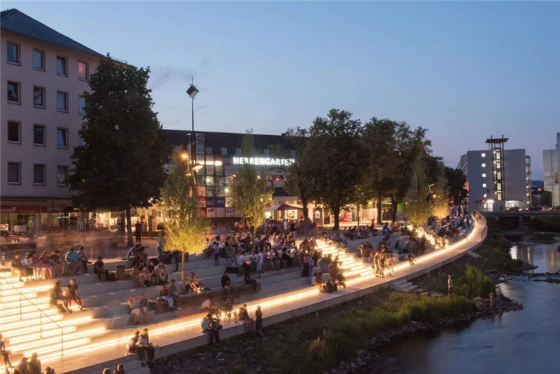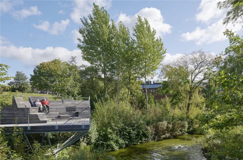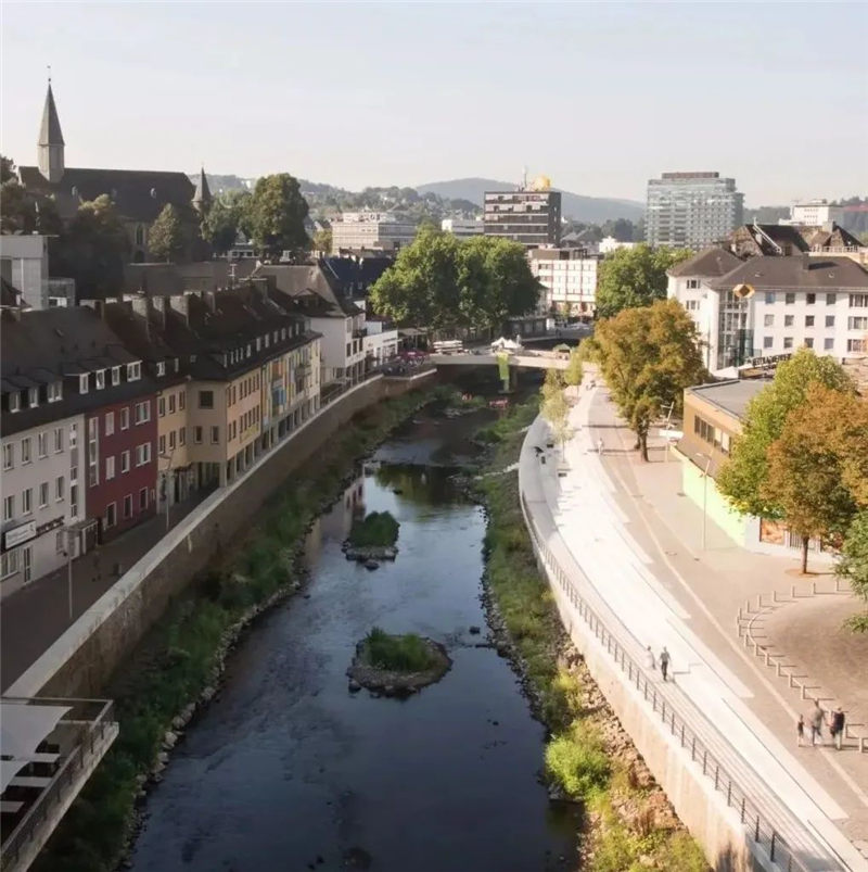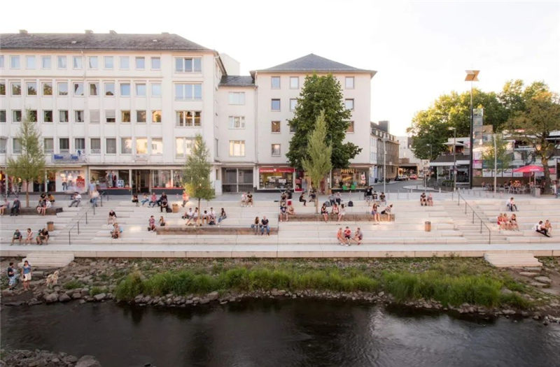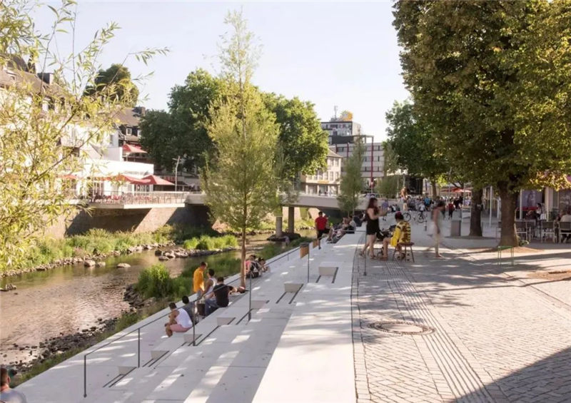 在拆除“ Siegplatte”(位于Sieg河堤防上的停車場(chǎng))之后,2012年至2016年期間沿著河段的大規(guī)模臺(tái)階建設(shè)使得新的直接通往河段的河流成為可能。錫根市中心。希格(Sieg)自然化,擁有草皮的島嶼和岸堤,可以使水生動(dòng)物和兩棲動(dòng)物通過生物通道。180米長(zhǎng)的樓梯雕塑在河邊,成為城市與河流互動(dòng)的表演舞臺(tái)。鑒于西格(Sieg)的自然風(fēng)光,西格特雷彭(Siegtreppen)變成了聚會(huì)場(chǎng)所。流域變成了上下城鎮(zhèn)之間的墊腳石。該項(xiàng)目獲得了無數(shù)獎(jiǎng)項(xiàng),并獲得了2017年德國(guó)景觀建筑獎(jiǎng)的“綠色基礎(chǔ)設(shè)施作為戰(zhàn)略”類別。