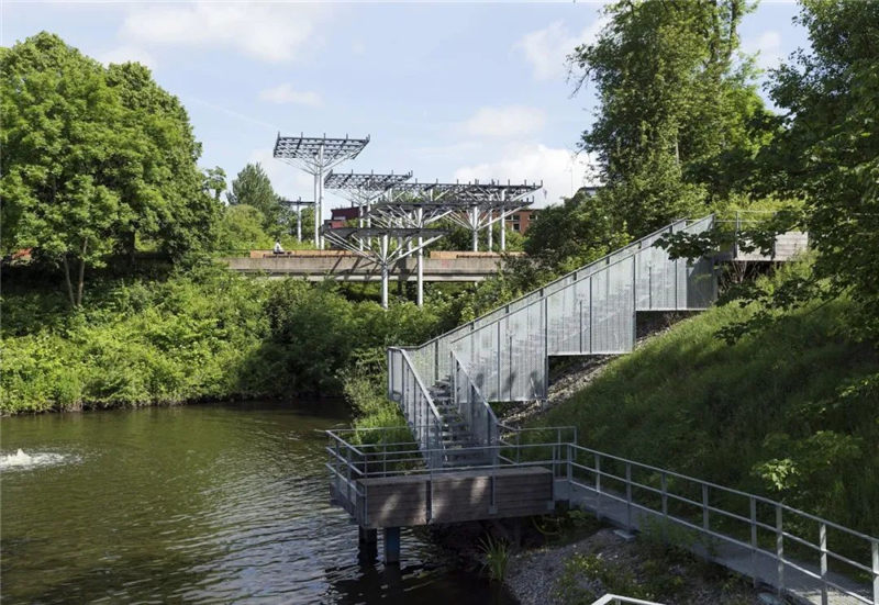 隨著河流的復(fù)興,180米長(zhǎng)的新“Siegtreppen”,重新設(shè)計(jì)進(jìn)一步的廣場(chǎng),長(zhǎng)廊和橋梁在附近的勝利贏得了Siegen它的城市中心在河背上。 清晰可讀和慷慨的自由空間結(jié)合了居民對(duì)城市生活和“綠色”娛樂的多方面要求,與水元素直接接觸。