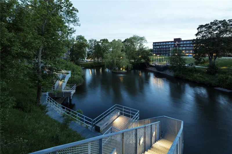 而改造之后的公園則滿布青翠、生機(jī)勃勃,使得康涅狄格州的生態(tài)及社會(huì)結(jié)構(gòu)得到了優(yōu)化。在與工程師及生物學(xué)家的通力合作下,團(tuán)隊(duì)所設(shè)計(jì)出的景觀不但修復(fù)了水陸生環(huán)境,更通過修復(fù)渠道般的河流減少了洪水泛濫,同時(shí)也引入了數(shù)百種新型本土植物。