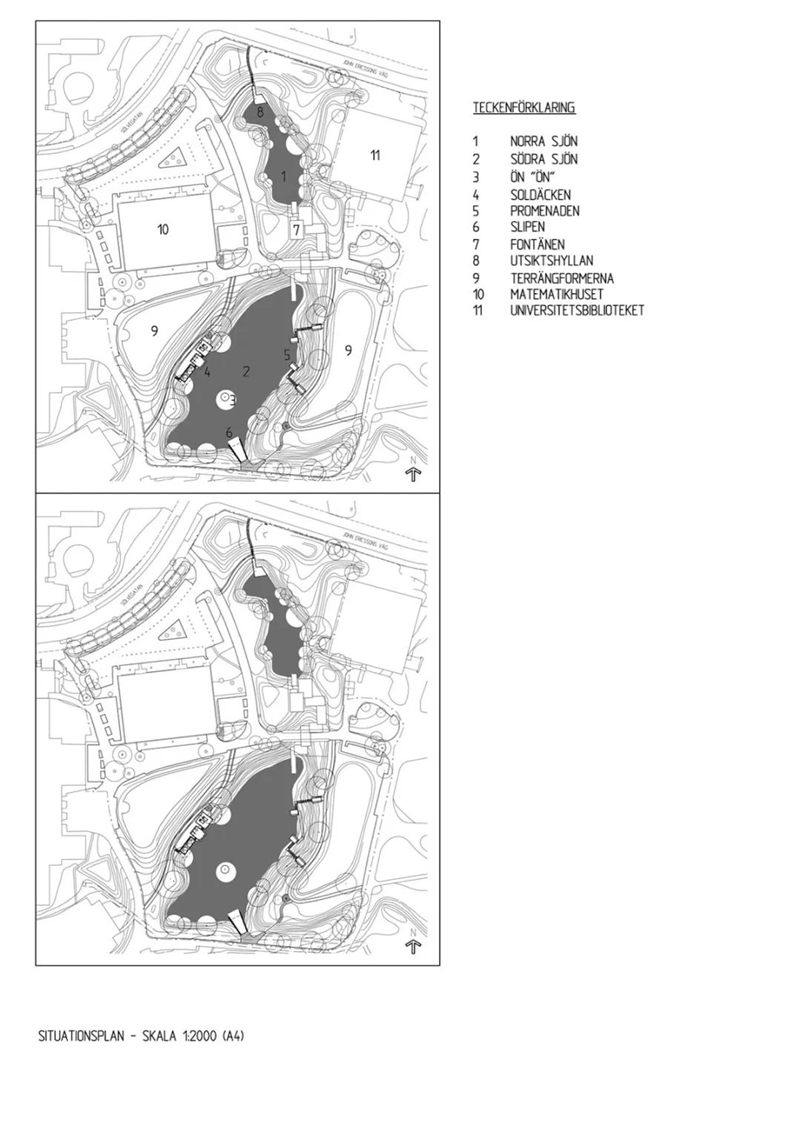 建筑師Klas Anselm在場(chǎng)地上排布了十幾棟建筑;簡(jiǎn)約的紅磚建筑星星點(diǎn)點(diǎn)的散布在斜坡上,位置相當(dāng)偏僻。學(xué)校相關(guān)部門相信學(xué)校會(huì)快速發(fā)展,這些單棟的建筑將會(huì)得到擴(kuò)張,最終縮短建筑之間的距離。確實(shí),學(xué)校是得到了發(fā)展和成長(zhǎng),但也還沒有發(fā)展到各個(gè)單元之間能產(chǎn)生有效聯(lián)系的程度,這會(huì)讓校園看起來是美麗的,但卻缺少互動(dòng)。顯然,校園內(nèi)缺乏的是能夠豐富社會(huì)生活的一種“密度”。
