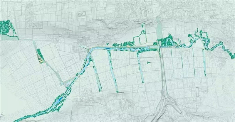 在整個(gè)流域、原有的山丘形態(tài)和人為改造的痕跡中,這條狹長(zhǎng)的河畔花園將這些場(chǎng)面、視野、沖突等構(gòu)成一場(chǎng)真實(shí)版愛森斯坦式“蒙太奇”。舊運(yùn)河留存的痕跡使得新的設(shè)計(jì)情景之中飽含復(fù)雜的時(shí)間性,有著十分遙遠(yuǎn)又非?,F(xiàn)代的奇異感??臻g與時(shí)間的沖突之間充滿著記憶與希望。